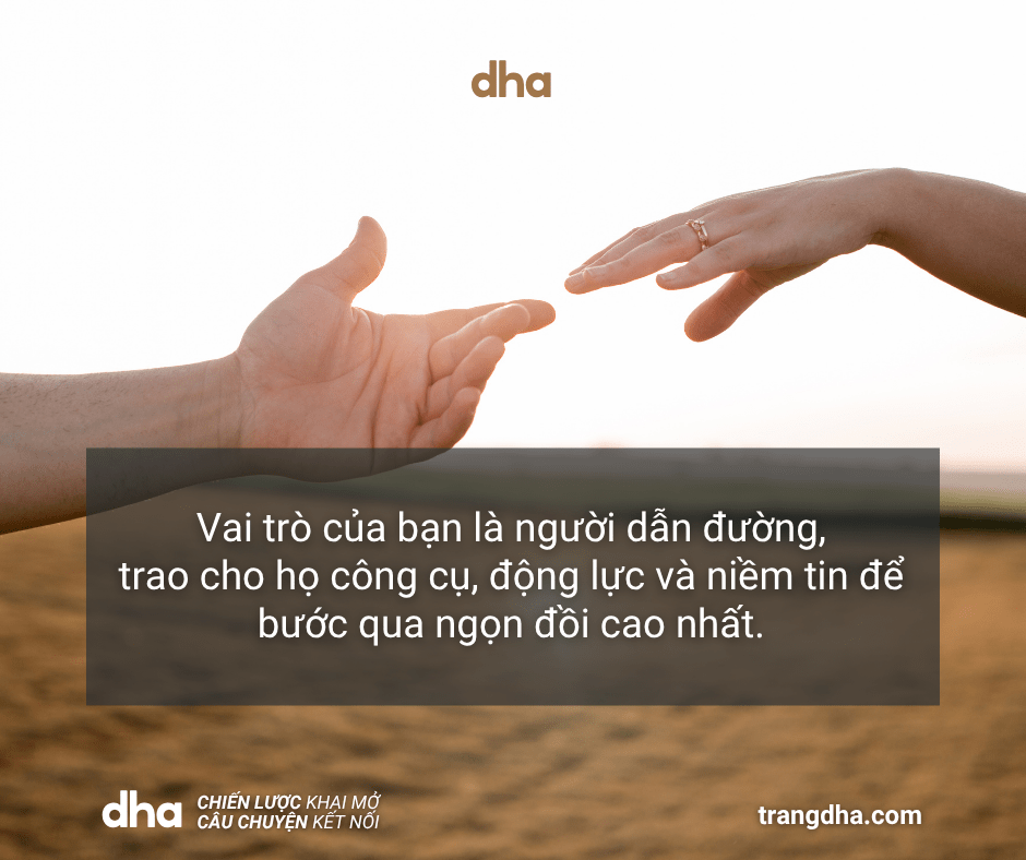 Vai trò của bạn là người dẫn đường, trao cho họ công cụ, động lực và niềm tin để bước qua ngọn đồi cao nhất. Khi họ thấy mình là nhân vật chính, họ sẽ nhớ mãi người đồng hành đã cùng họ đi qua chặng đường ấy.